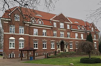 Die Kreisbildungstätte in der Düsterlohe in Barmstedt: Seit 1997 trägt das Haus den Namen Victor-Andersen-Haus, benannt nach dem ersten Kreisjugendpfleger des Kreises Pinneberg nach dem Zweiten Weltkrieg. Während der NS-Zeit war der Uetersener Victor Andersen (1907–1995) aktiv im Widerstand gegen das Naziregime. Bild: wikipedia